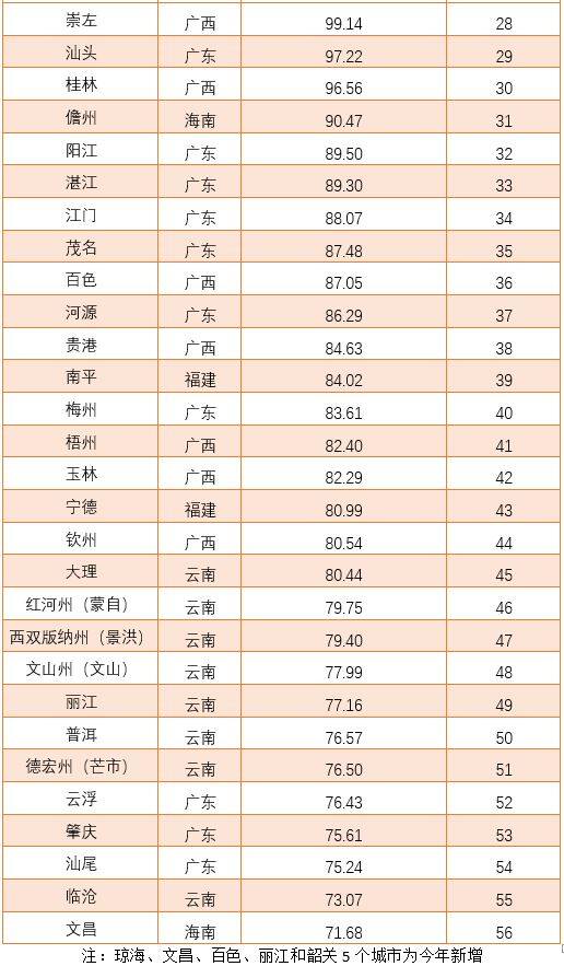 今年的结果显示,广州高居榜首,紧随其后的是海口,第三位是厦门。第四到十名的分别是福州、南宁、三亚、柳州、昆明、深圳和佛山。