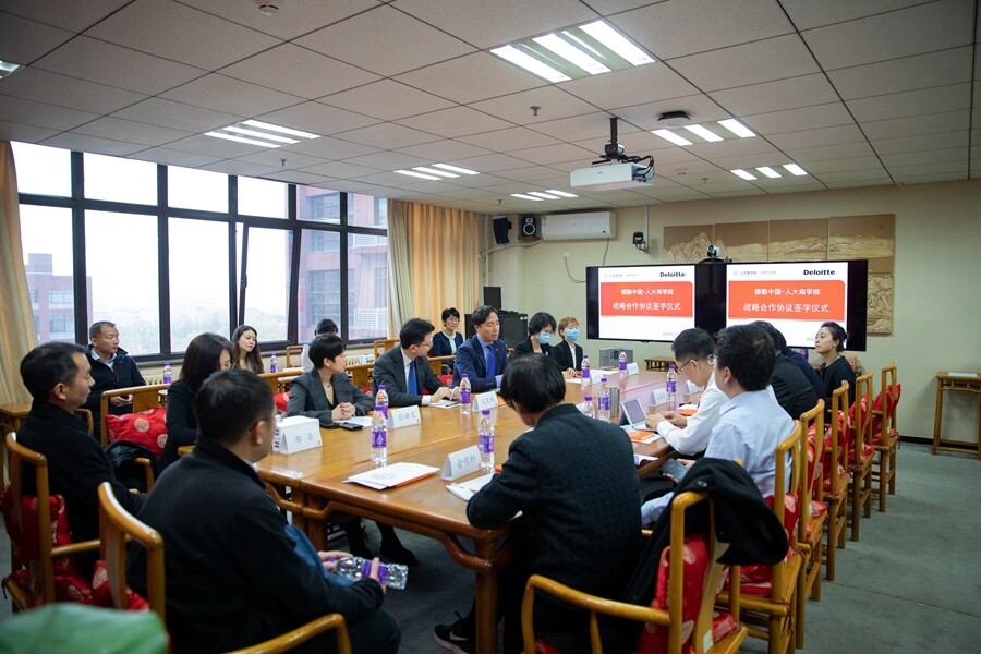 2020年11月18日,中国人民大学商学院与德勤中国在中国人民大学举行数字化领域战略合作协议签约仪式。双方在专业论坛、企业培训、知识共享、案例开发、课题研究、数据合作以及市场拓展等领域建立共赢、持续的战略合作伙伴关系,共同扩大双方品牌在业界的影响力。
