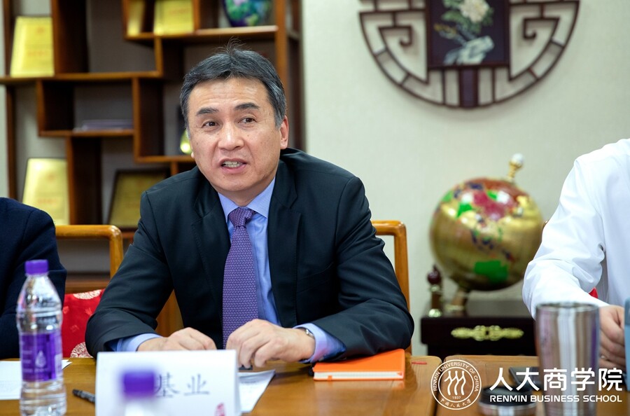 中国人民大学商学院院长毛基业致欢迎辞,感谢德勤这一年来多次授课,对商学院的人才培养带来了实质性的帮助。人大商学院贴近管理实践,在人才培养、社会服务方面与德勤价值观不谋而合。面对数字经济的挑战,人大商学院将“数字化转型与组织重构”确立为学院新的战略焦点,期望在这次战略合作的基础上,通过生态创新,合作方式创新,与德勤开启合作新篇章。