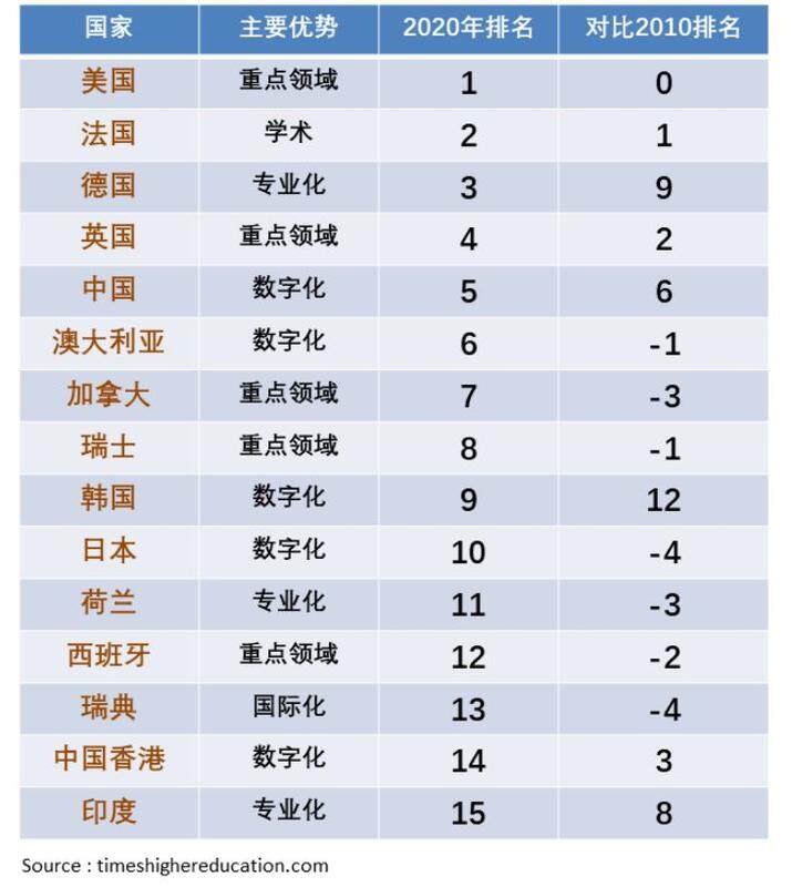世界大学就业力国家排名
