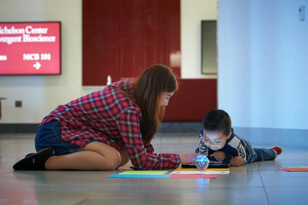 头图:南加大的研究生鼓励为机器人编程的学生。(摄影/Joseph Nakhost)