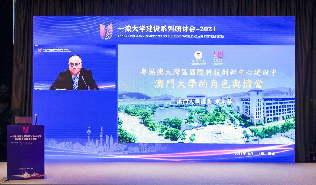 为加快推进一流大学建设,澳门大学参与由复旦大学主办的2021年度“一流大学建设系列研讨会”,与北京大学、清华大学、哈尔滨工业大学、复旦大学、上海交通大学、南京大学、浙江大学、中国科学技术大学、西安交通大学、香港大学、香港中文大学、香港科技大学、和澳门科技大学的校长、副校长,以及近百名代表共聚线上开展研讨,探讨一流大学建设思路,探索中国特色世界一流大学实现路径。