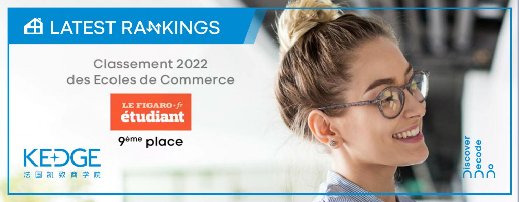 基于此,KEDGE被《费加罗报》评为2022年法国最佳商学院第9名,这是来自高等教育界的肯定。