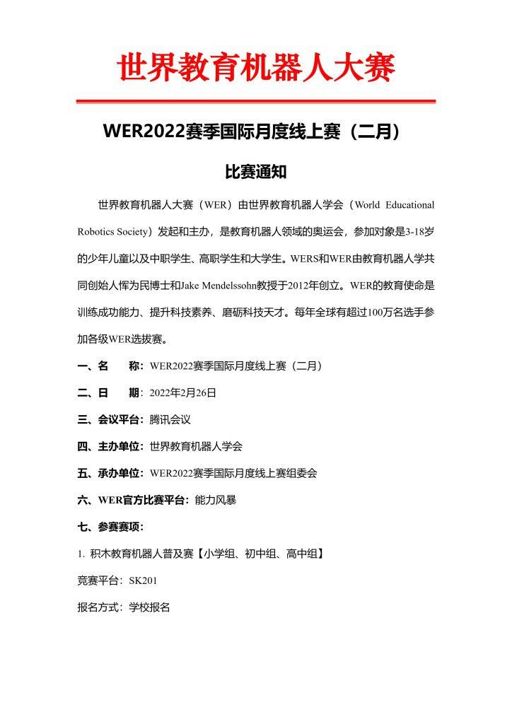 该赛将于2022年2月26日举办WER2022赛季国际月度线上赛,并为获奖队伍提供奖学金。