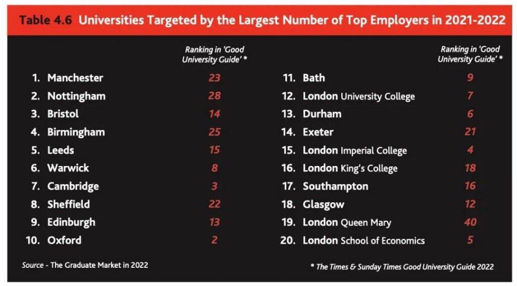 根据英国High Fliers Research机构今年二月发布的《2022毕业生就业市场报告(The Graduate Market in 2022)》,曼彻斯特大学在最受英国100家顶级雇主青睐大学中再次位居榜首。这是过去17年来第12次被评为第一。