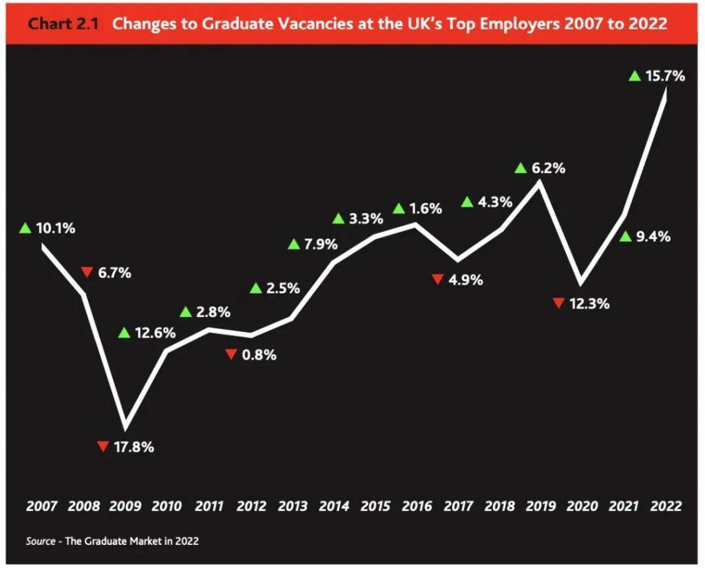 主要雇主的最新招聘目标显示,2022年提供的毕业生工作岗位数量预计将增加15.7%,这是超过15年以来毕业生招聘的最大年度增长。