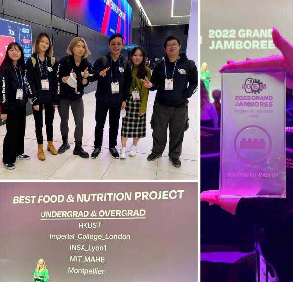 香港科技大学“Fisherly”团队在巴黎举行的“国际基因工程机器大赛(iGEM)” 2022 Grand Jamboree上获得季军!作为香港唯一进入决赛的大学队伍,大学的多学科团队展示了他们创新的鱼肉腐坏检测试剂盒,这为快速检测变质鱼肉提供了经济方便的解决方案,减少了消费者因食用变质鱼肉引起的健康风险并减少食物浪费。