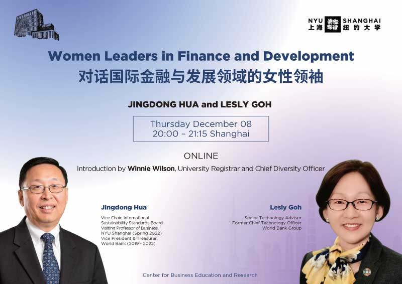 “对话国际金融与发展领域的女性领袖”是由华敬东先生联同学校的大力支持,组织举办的系列活动。华敬东曾任世界银行副行长兼司库(2019-2021年)、上海纽约大学商学访问教授(2022年春季),于2022年10月担任国际可持续发展标准委员会(ISSB)副主席。