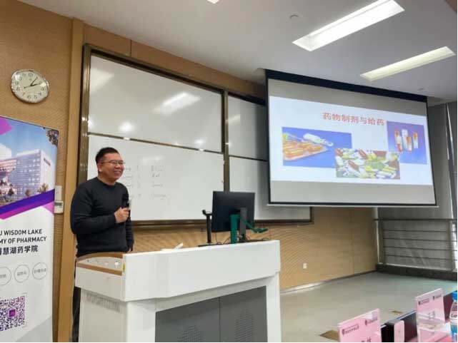 “希望通过今天药物制剂与给药的分享,让同学们了解如何做到药效最大化以及毒性最小化。” 他说。