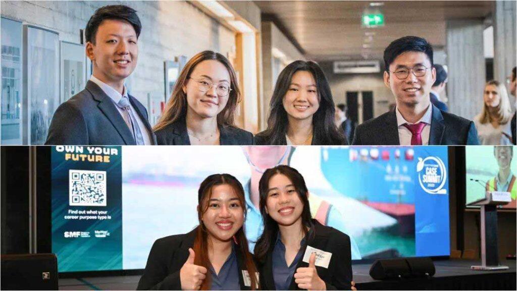 由新加坡国立大学案例咨询小组(CCG)的胡天翼(Jacky Hu)、陈诗惠(Alexis Tan)、金文祺(Jin Wenqi)以及陈勤峰(Johnathon Tan)所组成的新加坡国立大学工商管理学士(BBA)团队在“鹿特丹管理学院国际商业案例精英赛”(RSM STAR Case Competition)中表现出色。与此同时,另外两名新加坡国立大学工商管理学士的学生赖慧恩(Hazel Lye)与Jessy Lene Amolar在新加坡海事基金会组织的“2023年海事宣导网络案例峰会”(MaritimeONE Case Summit)中取得了优异成绩。