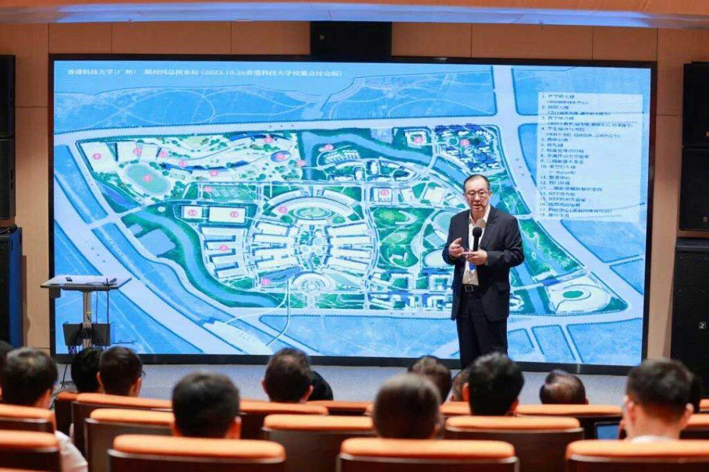 吴景深教授首先回顾了港科大(广州)的创校历程,强调了港科大(广州)独特的“枢纽—学域”学术架构及其背后所蕴含的有关学科融合的意义。随后,他详细介绍了广州校园的整体建设情况及未来发展规划,期待港科大(广州)利用南沙独特的区位优势,促进更多跨学科、跨校园合作。