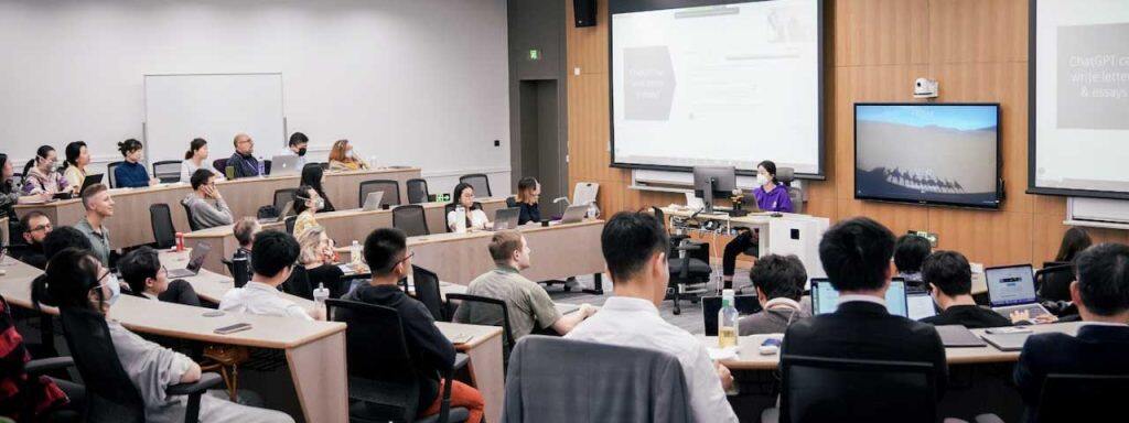 美国人工智能研究实验室OpenAI研发的人工智能聊天机器人ChatGPT近日引起广泛关注,而它究竟是如何运行的呢?3月10日,上海纽约大学举办了一场题为“ChatGPT与大型语言模型:实现类人智能对话系统”的公开讲座,由文理学部副主任Olivier Marin拉开序幕,计算机科学实践教授谭翊章(Wilson Tam)主讲。逾百名观众参加了本次讲座。