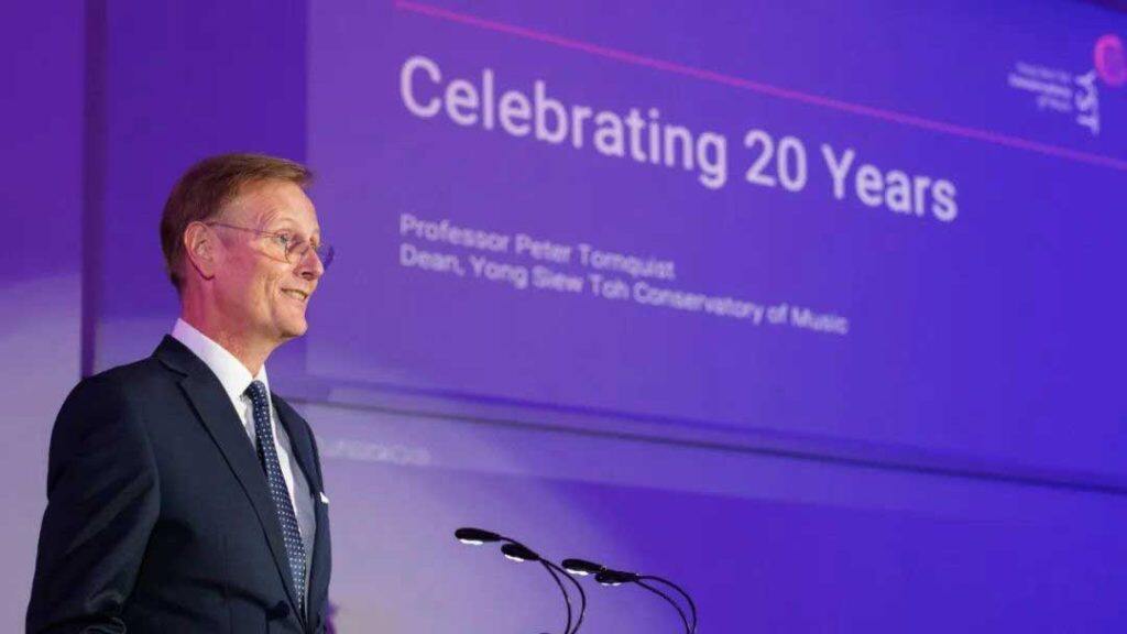 在音乐会前的鸡尾酒会上,杨秀桃音乐学院院长彼得·托奎斯特(Peter Tornquist)教授回顾了学院在过去20年里取得的辉煌成就,感谢捐助者、合作伙伴以及所有多年来为学院做出贡献的人的支持。