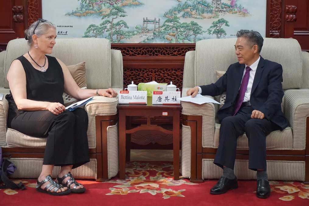近日,美国驻华大使馆公使衔新闻文化参赞马文茵(Bettina Malone)女士、美国驻武汉总领事馆总领事蓝如瑾(Melissa Lan)女士一行访问武汉大学,该校副校长唐其柱会见来宾。湖北省委外事工作委员会办公室美大处处长代平陪同访问。