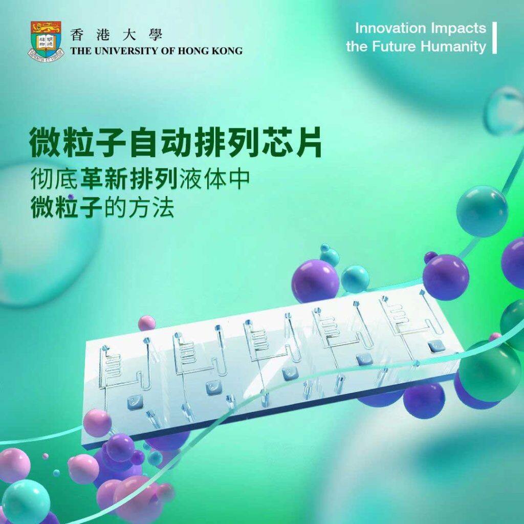 香港大学工程学院电机电子工程系谢坚文教授及李泽民博士共同研发出微粒子自动排列芯片,该芯片内建的微通道利用特设的路障,能轻松引导液体中散乱的粒子自动排成超高速流动链,以极低成本提供卓越的排列效能,彻底革新了排列液体中微粒子的方法。