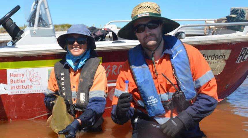 研究员杰克•英格尔布雷希特博士(Dr Jack Ingelbrecht)和大卫•摩根博士(Dr David Morgan) 领导可持续水生生态系统中心团队,在西澳大利亚阿什伯顿河为后鳍锯鳐(或称绿锯鳐)重建了基因族谱。英格尔布雷希特博士表示,保护锯鳐面临的最大障碍之一是对其繁殖群体知之甚少,我们的研究填补了这一关键空白。