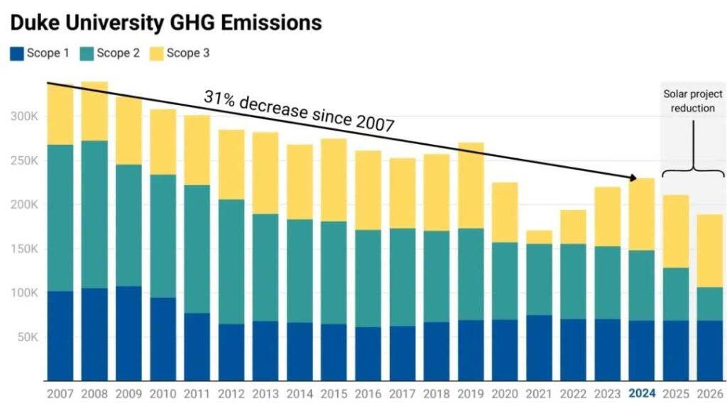 杜克大学本月宣布已兑现其2007年的承诺,在2024年实现碳中和。这一目标的实现意味着杜克校园实现了温室气体零排放,这得益于节能措施、对可再生能源的投资以及高质量碳抵消项目的支持。自2007年以来,尽管校园人口增长了24%,并新增了300万平方英尺的建筑空间,但是除去部分医疗中心和租赁空间,杜克已将所有来源的温室气体排放减少了31%。