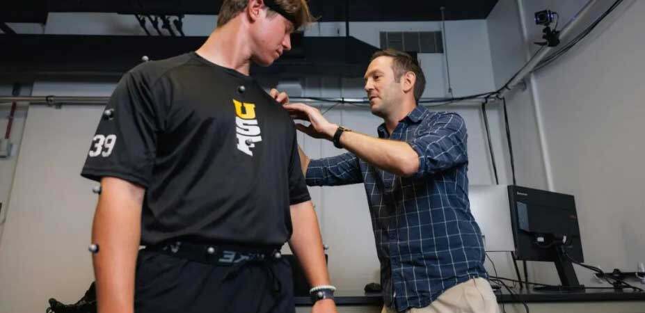 另一位学生,Blake Wittman ,同时也是旧金山大学 棒球队的投手。在实验室中,他投掷棒球以分析自己的投球动作。